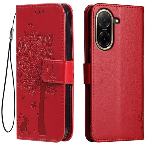 IMIRST Xiaomi Redmi Note 9T Phone Case - Premium Leather Case for Xiaomi Redmi Note 9T 5G, Flip Wallet Protective Case Cover for Xiaomi Redmi Note 9T 5G. KT1 Wish Tree Red