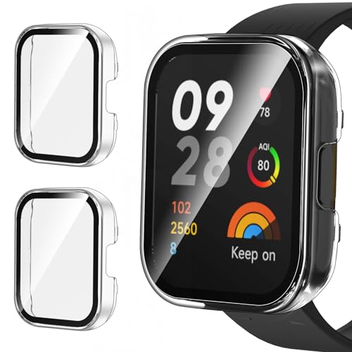 Msiall 2 pièces Compatible avec redmi watch 3 Housse de protection, Protection d'écran en TPU souple et complète, Résistant aux rayures Housse de protection d'écran avec -Argent rose