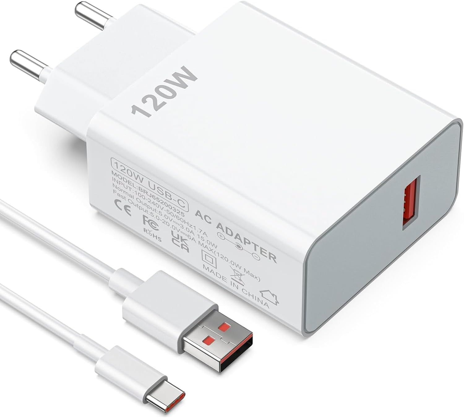 Kit Chargeur 120W Turbo Charge pour Xiaomi, Redmi, Poco, Black Shark. Chargeur 120W Max + Câble USB-C pour Xiaomi, Redmi, Poco, Charge Rapide. Mi Turbo Charge 90W, 67W, 33W Câble Haute Vitesse