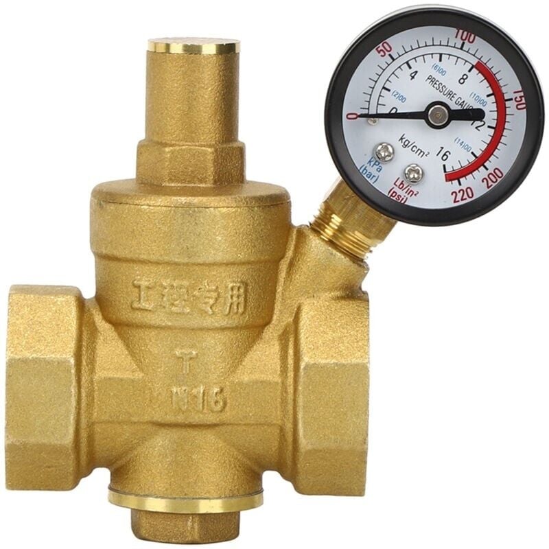 Régulateur de pression en laiton DN15 20 mm filetage G 1,6 MPa Réducteur de pression d'eau réglable avec manomètre
