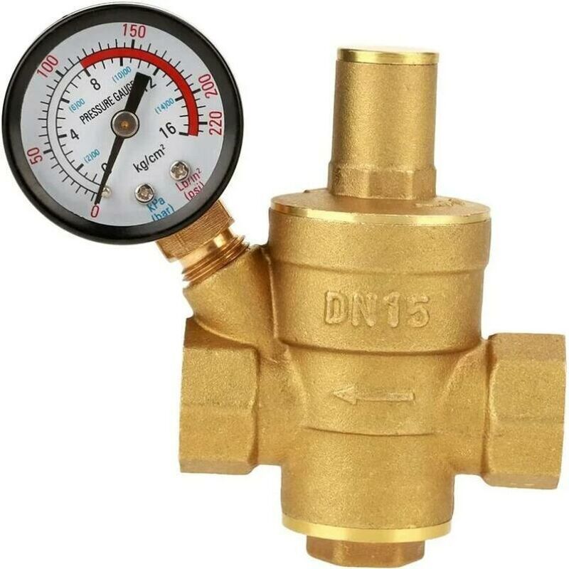 Réducteur de Pression d'eau DN15 Réducteur de Pression d'eau réglable en Laiton avec manomètre pour Usage Domestique(1pcs)