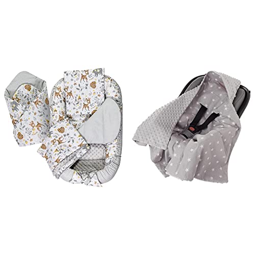 Medi Partners 5 éléments Cocon de Bébé 90x50cm 100% Coton Baby Nest Reducteur de lit Bébés Oreiller Couverture Insert & Couverture enveloppante bébé nid d Ange siège Auto 85x85cm