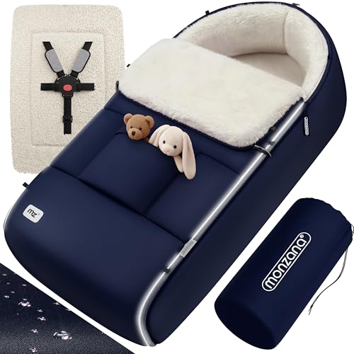 MONZANA® Chancelière universelle avec chauffe-mains pour poussette, landeau ou siege auto, Reducteur de lit bébé, Couverture bebe emmaillotage, nid d’ange, gigoteuse Hiver, Plaid cosy - Bleu