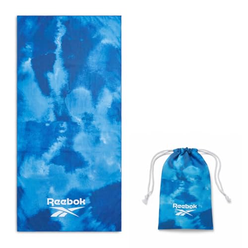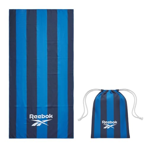 Reebok Serviette de Plage Anti-Sable en Microfibre à séchage Rapide, légère et compacte, Sac de Transport Inclus, Grande Serviette de Voyage pour Piscine, Salle de Sport et Voyage, 90 x 180 cm, Bleu