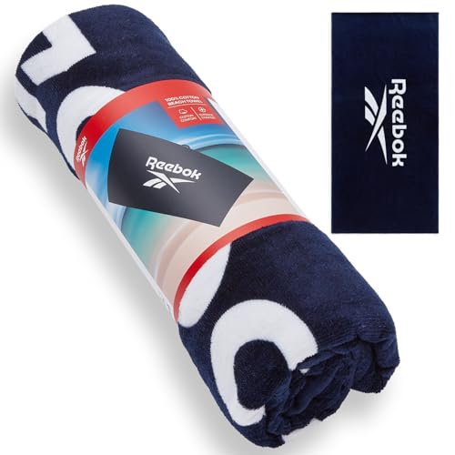 Reebok Positano – Serviette de Plage en Coton avec revêtement en Velours, Grande Serviette de Plage pour Adultes, séchage Rapide, Douce, pour Piscine, Chaise Longue et Accessoires de Vacances, 70 x
