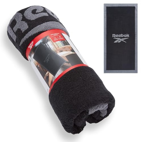 Reebok Prague Serviette de Bain 100% Coton de qualité supérieure, Douce au Toucher, absorbante et à séchage Rapide, idéale pour la Salle de Bain, la Salle de Sport et Les Voyages, Noir