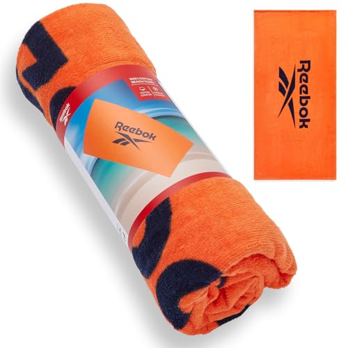 Reebok Positano – Serviette de Plage en Coton avec revêtement en Velours pour Adultes – Séchage Rapide et Douce – pour Piscine, Chaise Longue et Accessoires de Vacances – 70 x 140 cm – Orange Arena