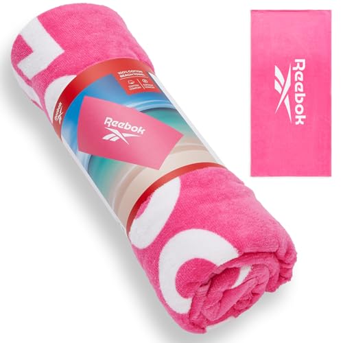 Reebok Serviette de Plage Anti-Sable, Serviette en Microfibre à séchage Rapide, légère et compacte, Sac de Transport Inclus, Grande Serviette de Voyage pour Piscine, Salle de Sport et Essentiels de