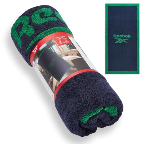 Reebok Prague Serviette de Bain 100% Coton de qualité supérieure, Douce au Toucher, absorbante et à séchage Rapide, idéale pour la Salle de Bain, la Salle de Sport et Les Voyages, Bleu Marine/Vert