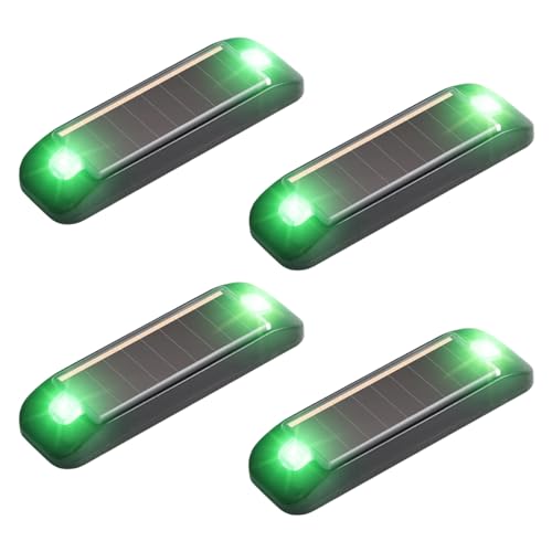 WASAGA Feux d'Avertissement Solaires, Mini Réflecteur LED Solaire Étanche avec Mode de Flash Automatique pour Vélo Voiture Moto Scooter (Pack de 4) (Vert)