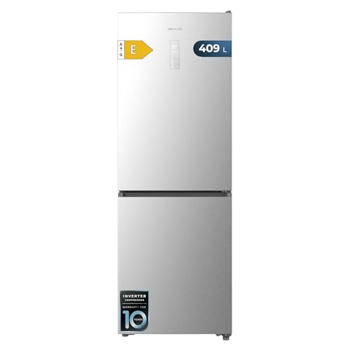 Cecotec Réfrigérateur Combi 409L No Frost Bolero CoolMarket Combi 409 Inox C. Hauteur 185cm, MAX INSIDE avec VIP Tech, Compresseur Inverter Plus, Basse Consommation, Tiroir Température Variable, Inox