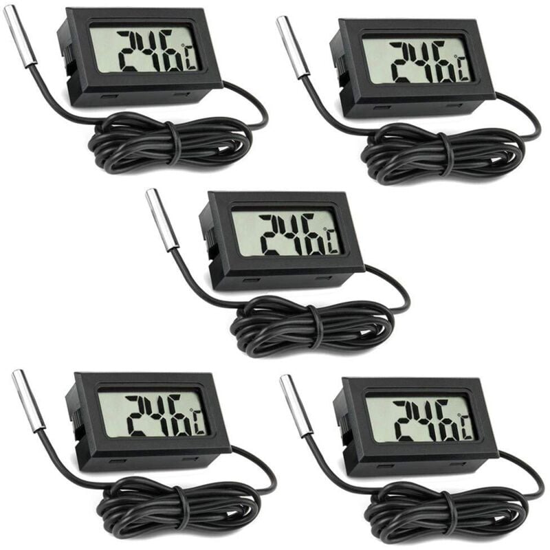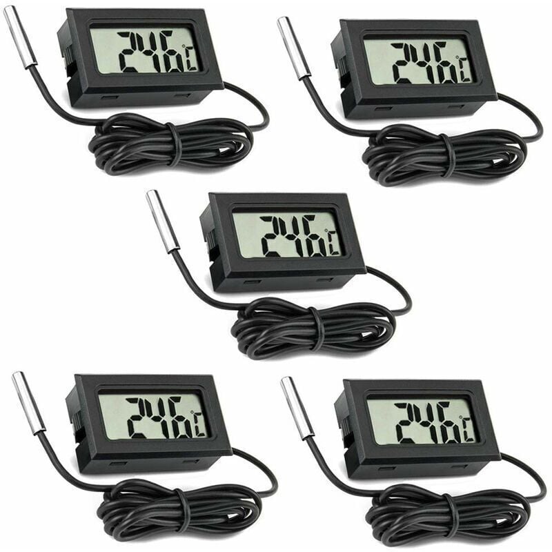 Lot de 5 thermomètres LCD numériques avec sonde externe pour voiture, réfrigérateur, congélateur, aquarium