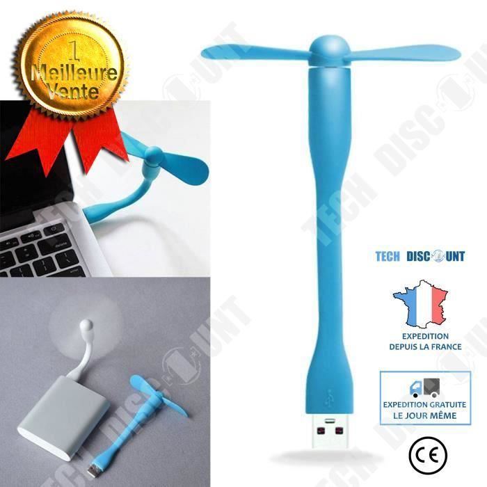 TD® Mini Ventilateur USB Refroidissement Portable PC / Ordinateur Batterie Externe Silencieux Bleu Souple avec pales en silicone