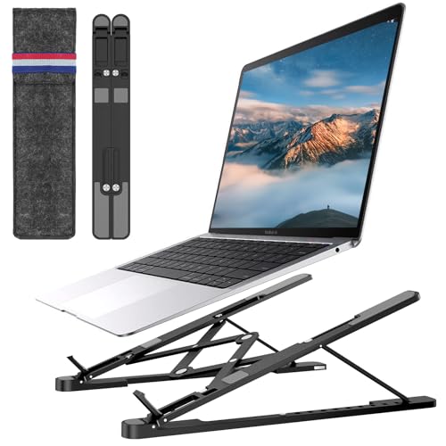 Euqvunn Support Ordinateur Portable -[Réglage 10 Angles] En Alliage d'Aluminium Pliable & Portable Support pour PC, Design Antidérapant & Refroidissement, pour Ordinateurs 10"-17,3" (Noir)