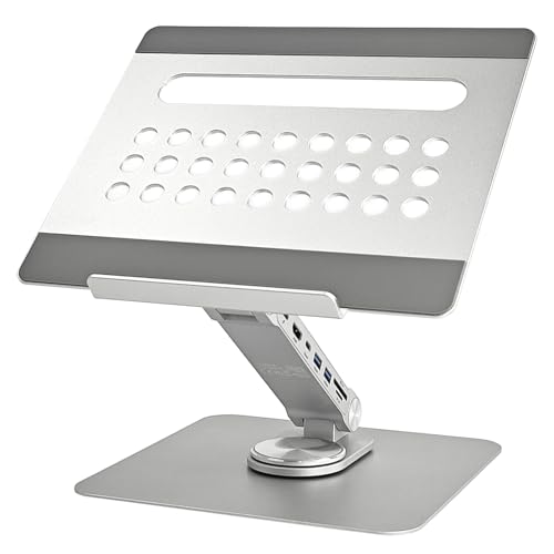 JEXNOVASHOP-Support Ordinateur Portable Aluminium, Refroidissement Support PC Portable Ventilé avec Double Axe Rotation Réglables Pliable Ergonomique, Support de Livres, Compatible avec MacBook (10""-