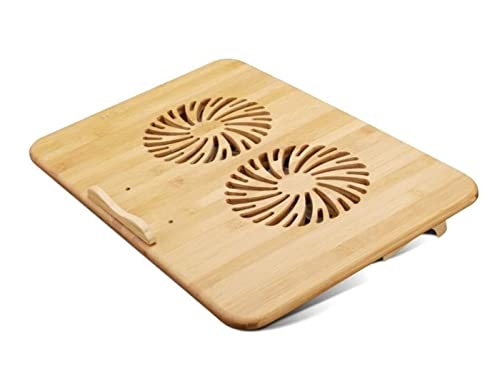 KLIM Bamboo - Refroidisseur PC Portable - Vitesse réglable - Support ventilé avec Structure en Bambou pour Ordinateur 10’ à 15,6’ - Extra Port USB [ Nouvelle Version ]