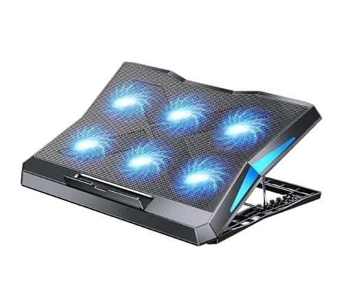 MATEPROX Refroidisseur PC Portable, Support Ventilé Ordinateur avec 6 Ventilateurs Silencieux, Réglage de 5 hauteurs, 2 Ports USB et lumière LED Bleue pour Le Jeu et Le Bureau