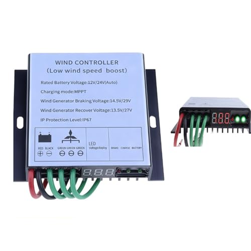 YIGECHENXIN Contrôleur de Turbine Éolienne Automatique 1800W 12V/24V - Régulateur de Charge Éolienne Étanche IP65 avec Protection Contre la Surcharge, Installation Facile pour la Maison,24V
