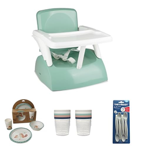 Thermobaby Lot Repas Bébé : Rehausseur Chaise Pliable GUSTO 2en1 + Coffret Vaisselle Micro-ondes + 10 Boîtes Conservation 250ml + 4 Cuillères