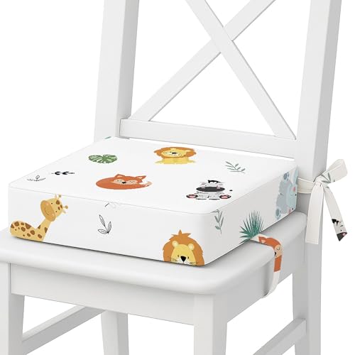 Rehausseur chaise enfant 32x32x8 cm - Coussin réhausseurs chaises haute pour enfants voyage e maison Réhausseur en mousse avec taie d'oreiller lavable Safari