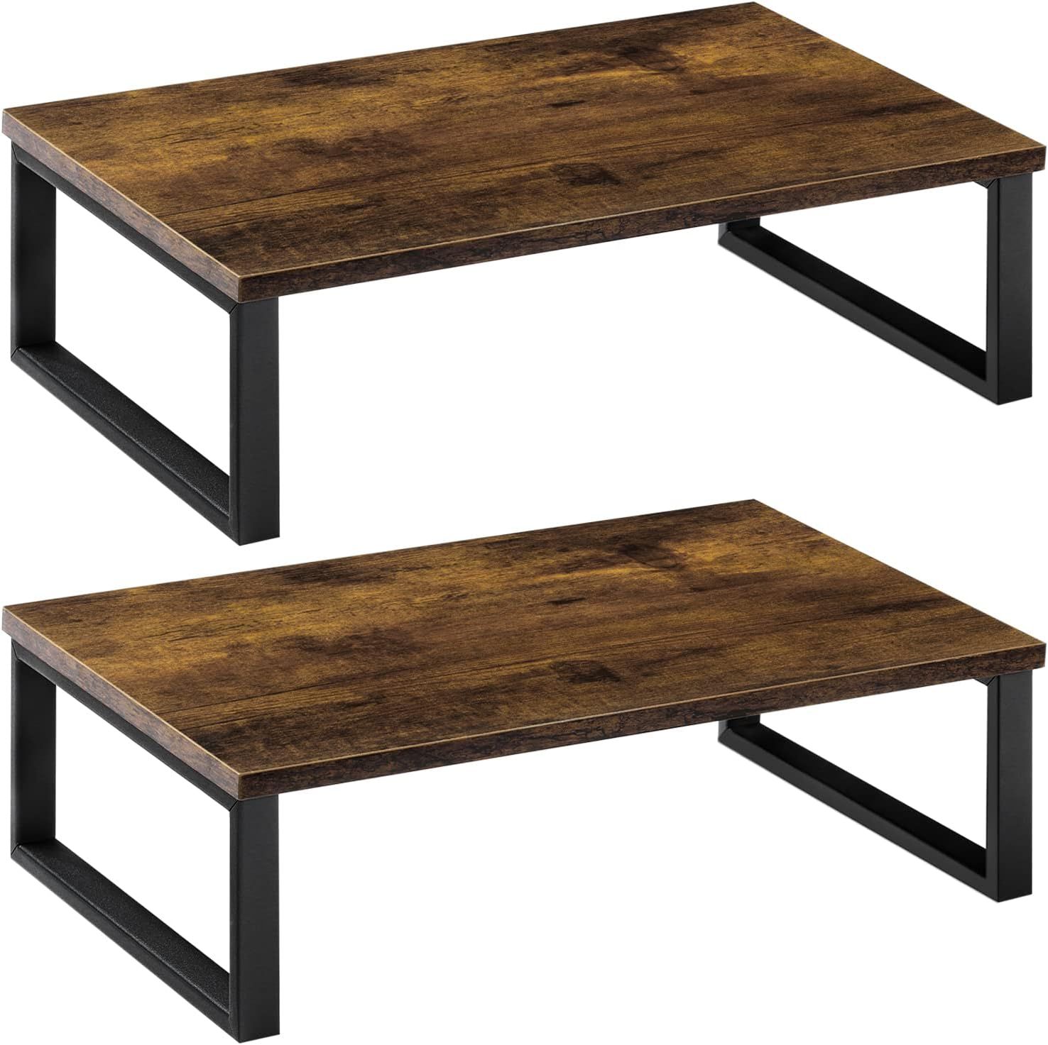 TUHU-Support De Moniteur Réhausseur D`Écran Support D'Ordinateur Réhausseur D`Écran Vintage En Bois,Étagère De Rangement De Bureau Pour La Maison Ou Le Bureau,Brun,40X25X12.3Cm (2 Pack)