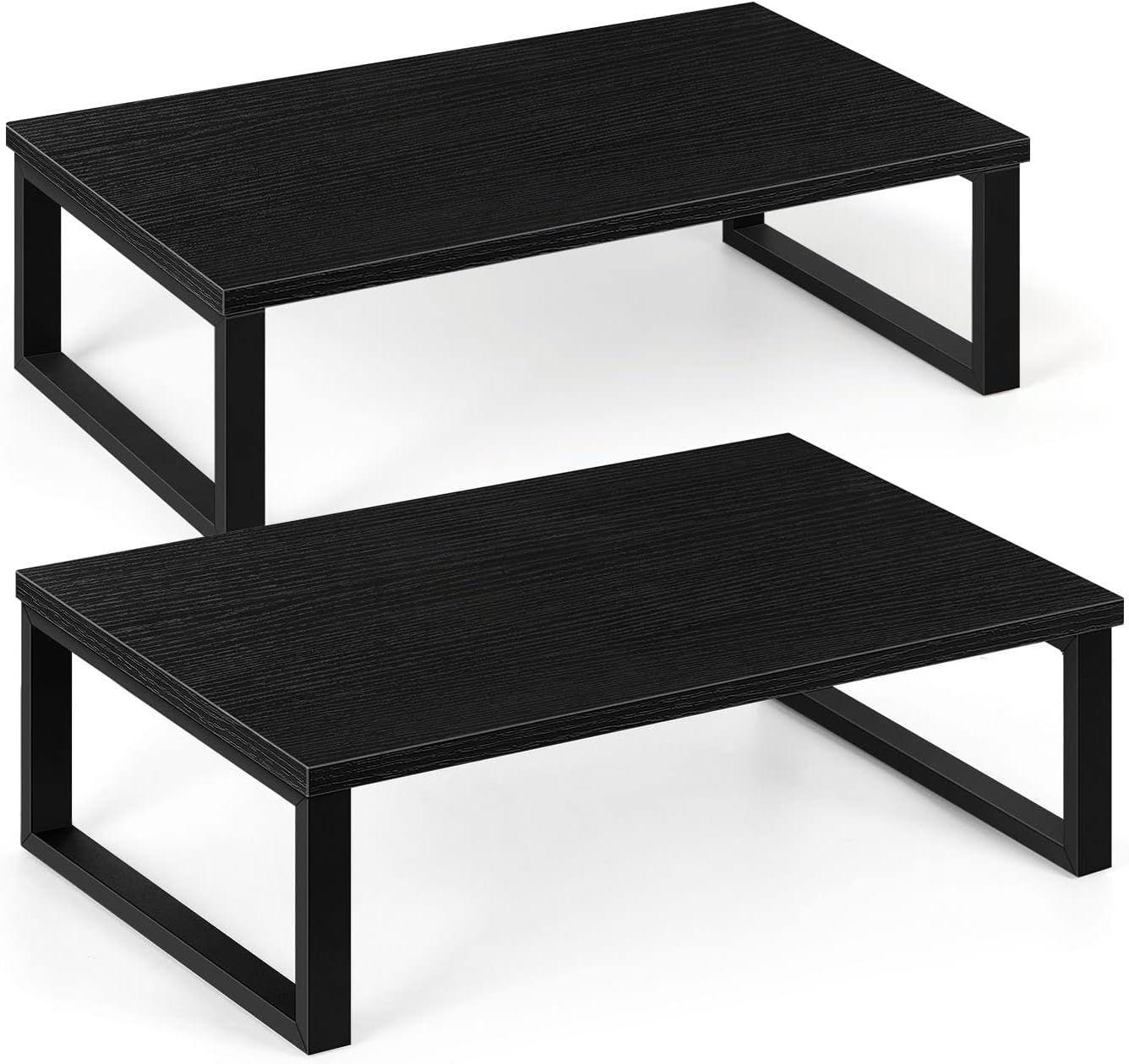 TUHU-Support De Moniteur Réhausseur D¿Écran Support D'Ordinateur Réhausseur D¿Écran En Bois,Étagère De Rangement De Bureau Pour La Maison Ou Le Bureau,Noir,40X25X12.3Cm (2 Pack)