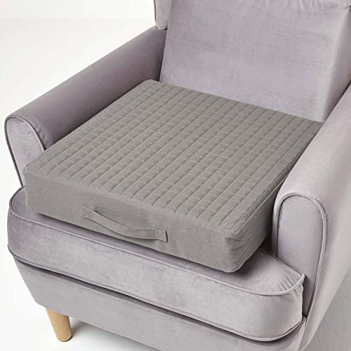 HOMESCAPES Coussin d’Assise déhoussable en suédine, Coussin rehausseur de Chaise et Fauteuil, 50x50x10 cm Gris