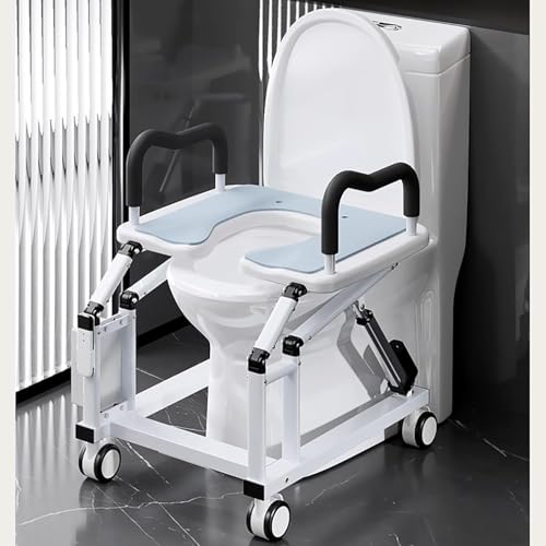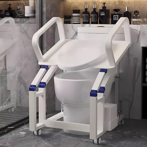 Rehausseur de chaise de toilette pour personnes âgées - Roues rotatives à 360° - Accoudoirs antidérapants - Angle de levage de 29° - Design mobile pour une assistance sûre dans la salle de bain