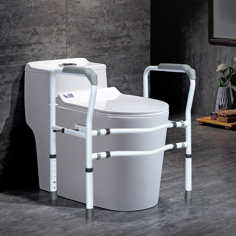 Costway cadres de sécurité pour toilettes pour personnes âgées, rehausseur toilette adulte hauteur 63-76 cm largeur 56,5-62 cm clip rrotatif à 360°, barre d'appui pour toilettes