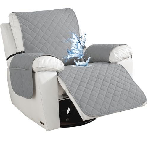 CYCMACO Imperméable Housse Fauteuil Grand 1 Place, Housse pour Canapé Relax avec Poche, Antidérapant, Amovible, Lavable, Résistant À l'usure, pour Fauteuil Relax Electrique, Chat Chiens, Gris Clair