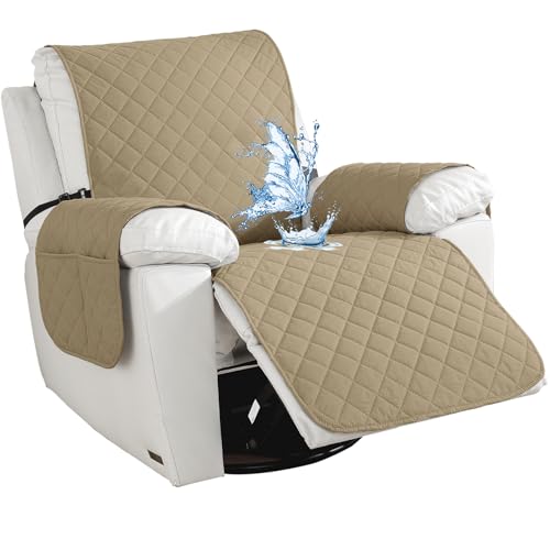CYCMACO Imperméable Housse Fauteuil 1 Place, Housse pour Canapé Relax avec Poche, Antidérapant, Amovible, Lavable, Résistant À l'usure, pour Fauteuil Relax Electrique, Chat Chiens, Beige