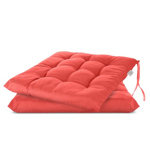 Brandsseller Lot de 2 Coussin de Chaise 40x40 cm Coussin d'assise Rembourrage de Chaise avec Fixations Décoration pour l'intérieur et l'extérieur piqué - Rouge