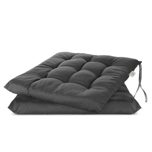 Brandsseller Lot de 2 Coussin de Chaise 40x40 cm Coussin d'assise Rembourrage de Chaise avec Fixations Décoration pour l'intérieur et l'extérieur piqué - Anthracite