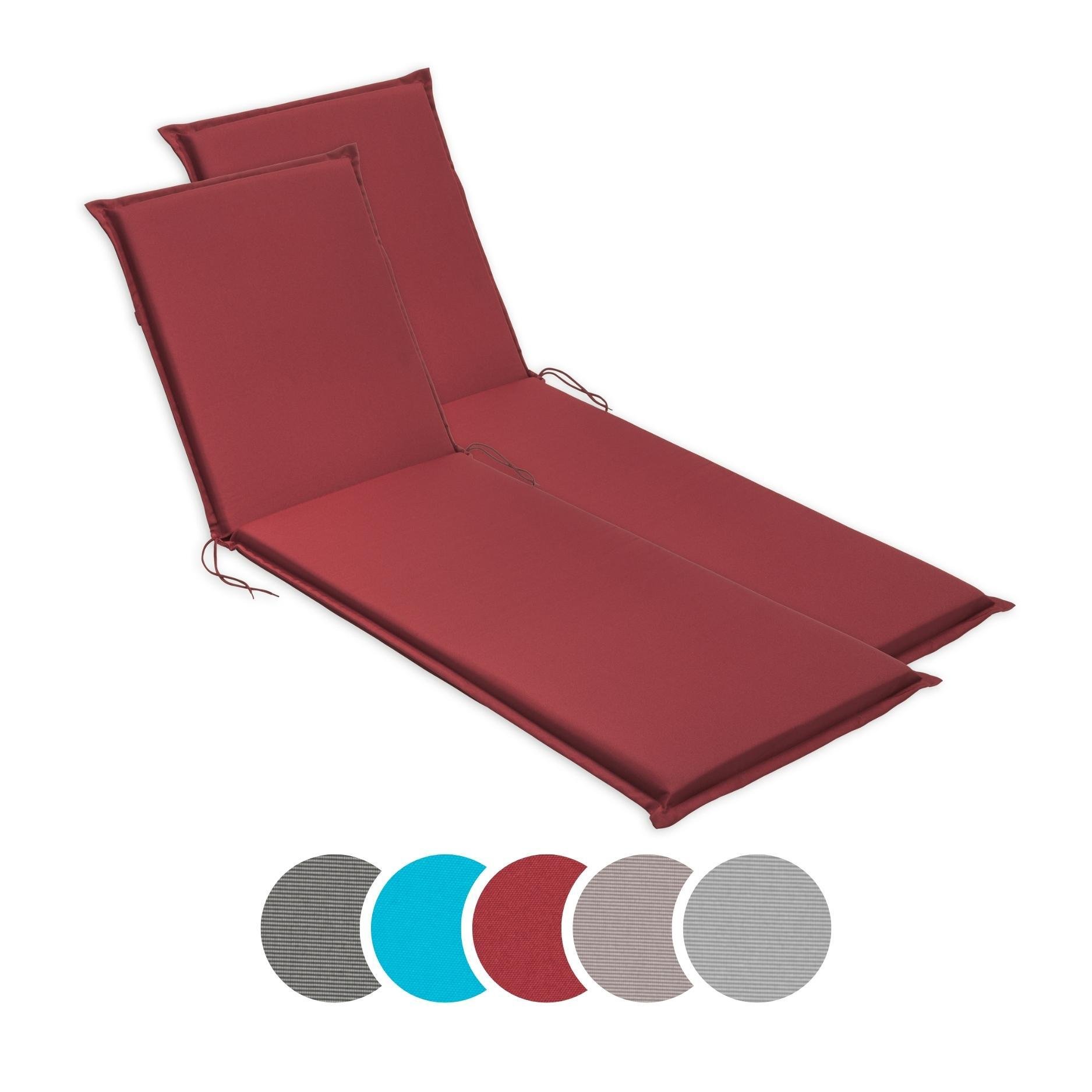 sleepling - Set de 2 chaises longues de jardin, rembourrage pour chaise longue, 190 x 58 cm, 6 cm d'épaisseur, rouge