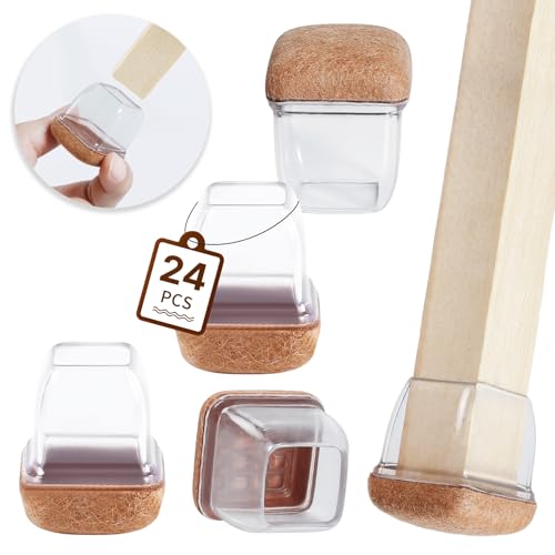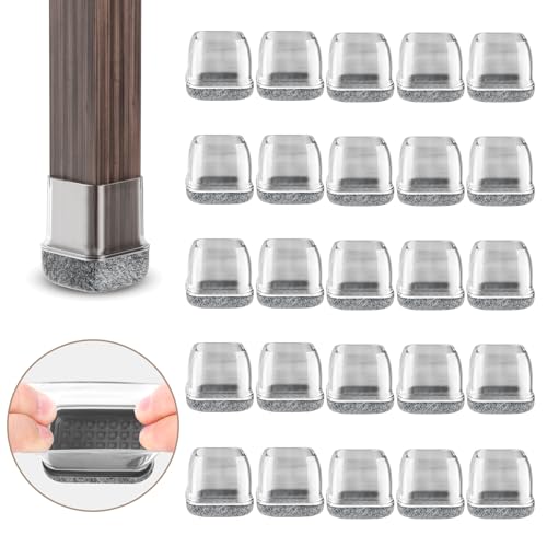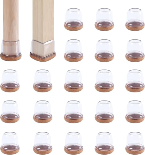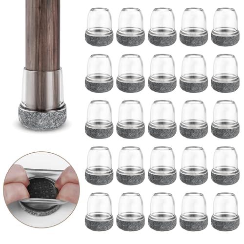 RCHYFEED 24 pièces Protection pour Pieds de Chaise 22-25mm avec Rembourrage en Feutre Transparent, Couvre Pieds de Chaise Meubles en Silicone 1" Protege élastique, Patins Embout de Chaise en Feutre