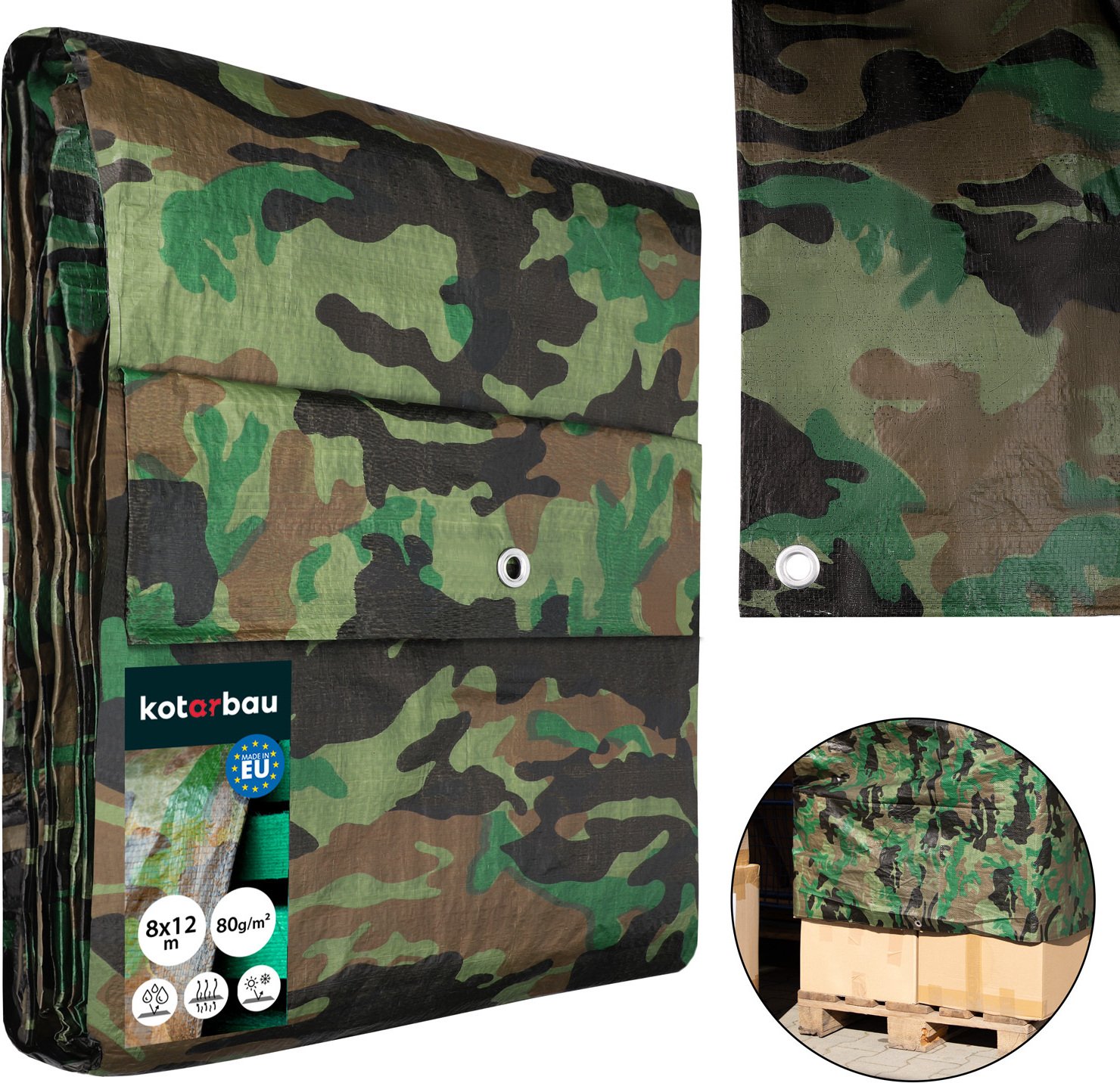 KOTARBAU® Bâche de Protection Extérieur Polyéthylène 8 x 12 m Camouflage 80 g/m² Bâche Anti UV Bache Remorque Bache Impermeable Exterieu