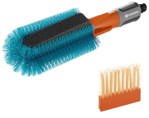 Gardena Cleansystem Brosse de lavage pour vélo set: brosse de lavage pour nettoyer les vélos, les remorques ou les poussettes, éponge remplaçable incluse, avec débit réglable (18865-34)