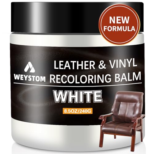 Baume recolorant pour cuir WEYSTOM - Colorant rénovateur blanc pour meubles, sacs et intérieurs de voiture | Répare les rayures, les décolorations et les fissures tout en renouvelant les surfaces en