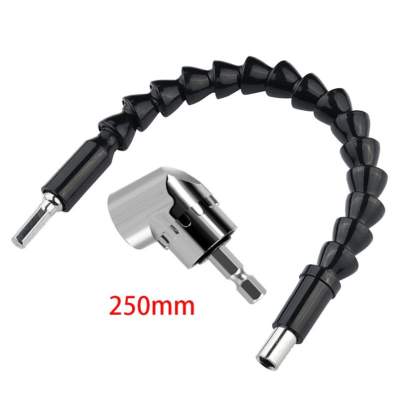 250mm Fixation de perceuse à Angle droit 105 degrés et Kit de mèches d'extension d'angle Flexible pour perceuse ou tournevis, outil adaptateur de douille 1/4" ""Nipseyteko
