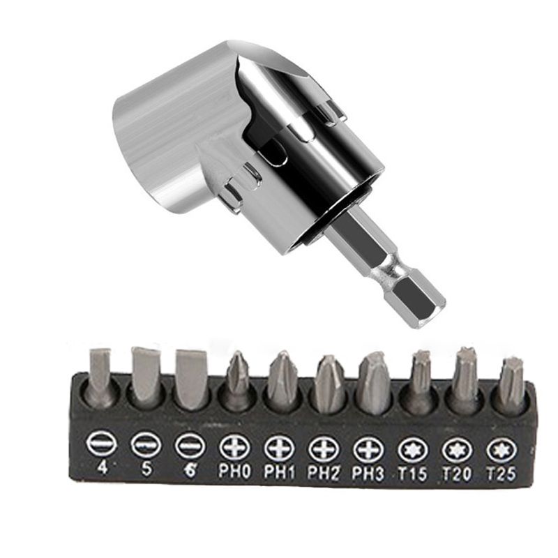 Foret à angle droit et kit d\extension d\angle flexible, Renvoi d\Angle Visseuse Coudée 105 Degrés Hexagonale 14\ pour Perceuse