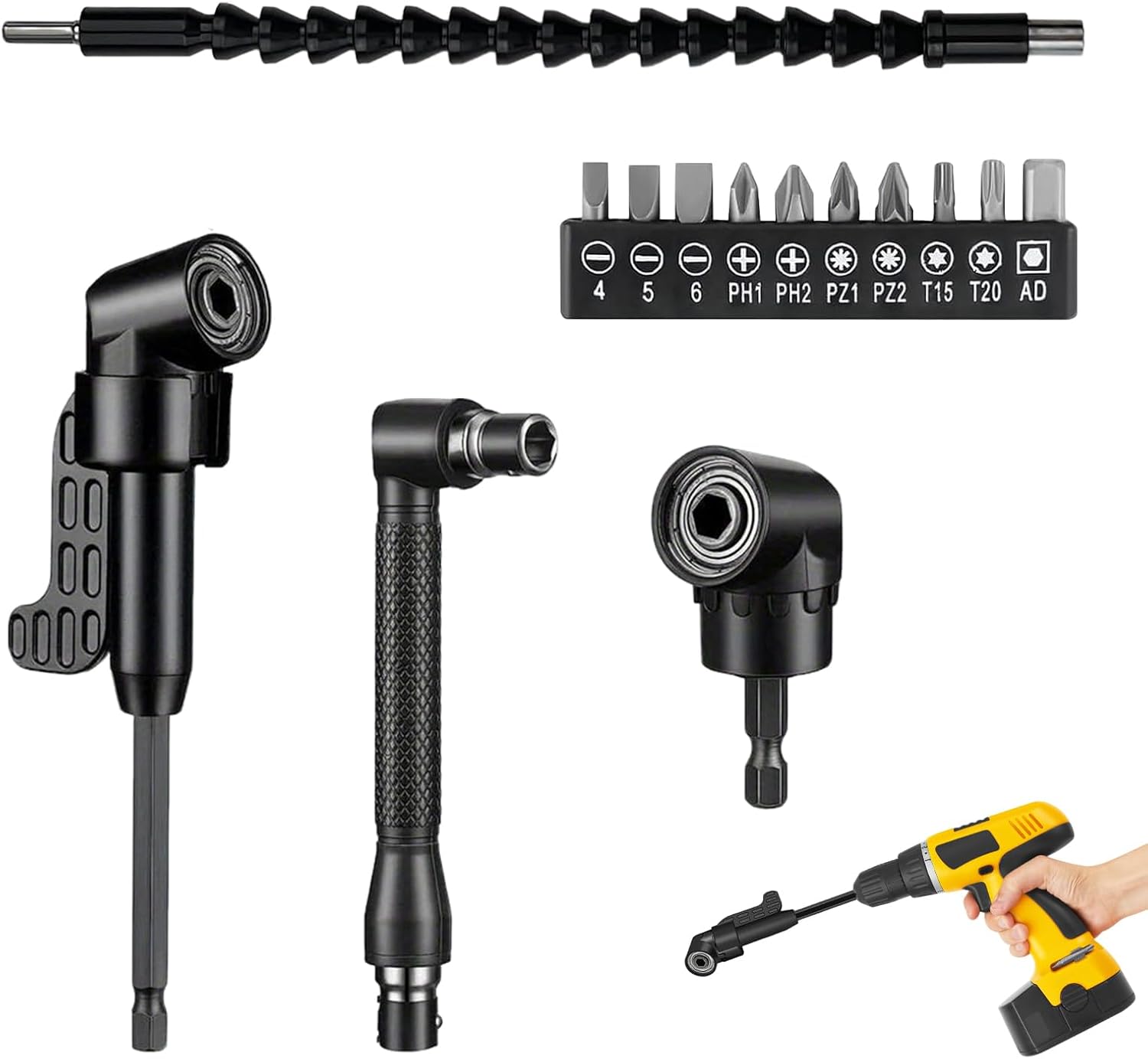 Lot de Renvoi d'Angle - Perçage et vissage à 90 degrès - Pour Visseuse sans fil + Vissage 12 Pièces, Gris/bleu Marine/jaune/marron, Set de 12 Pièces