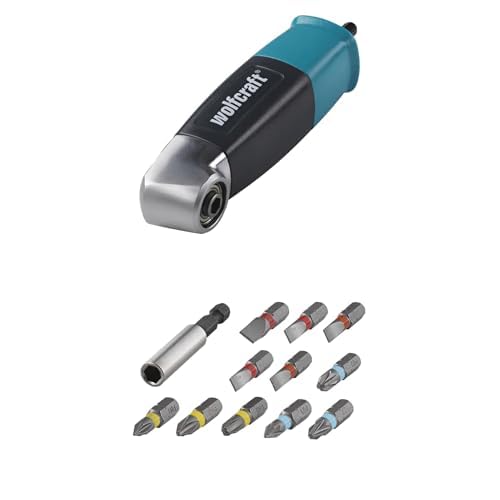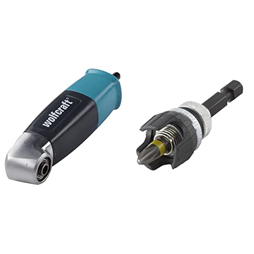 wolfcraft 4688000 Renvoi d'Angle à 90° pour Visseuse sans fil - Embout de 6,35 mm - Queue 6 pans 1/4" & 4055000 Adaptateur de Vissage 6 Pans de 6,3 mm, Hauteur 65 mm