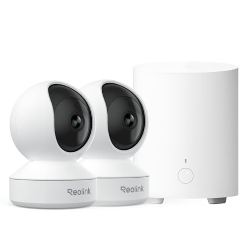Reolink Pack Sécurité Intérieur 2× Caméras WiFi E1 4MP à 360° avec Suivi Automatique et Détection IA + Home Hub Mini, Stockage Local, sans Abonnement