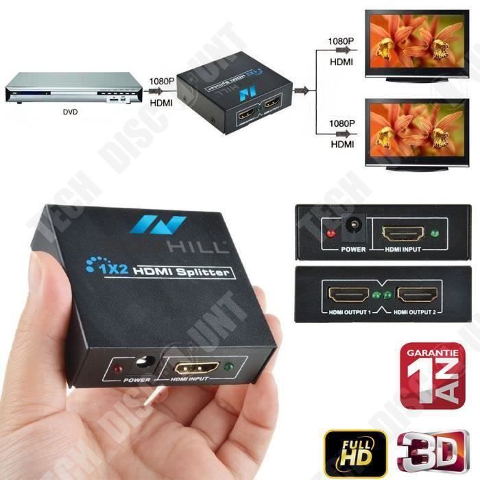 TD® HDMI Répartiteur 2 Ports 1x2 avec 1 Entrée 2 Sorties 1080p Full HD HDCP- convertissuer tv - repartiteur HDMI avec ports vidéo
