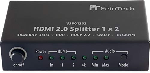 FeinTech VSP01202 Répartiteur HDMI 2.0 1x2 avec 4K HDR Down-Scaler Audio-EDID Noir