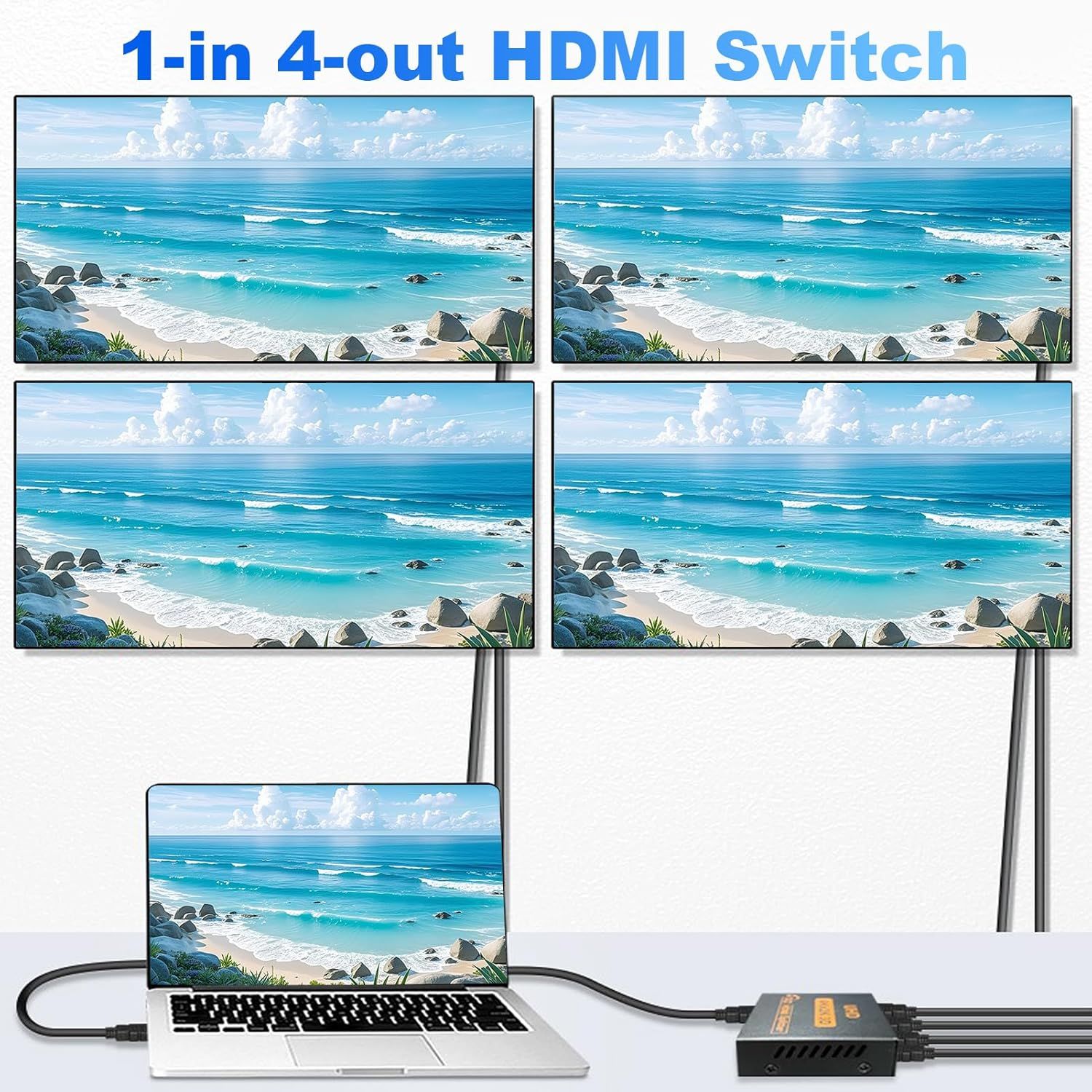 KiWiBiRD Splitter HDMI 4 Sorties repartiteur hdmi Splitter 4K répartiteur ecran 1 entrée 4 Sorties 3D 2160p 1440p 1080p HDCP, Compatible avec TV Box PC Ordinateur Portable PS4 PS5 projecteur