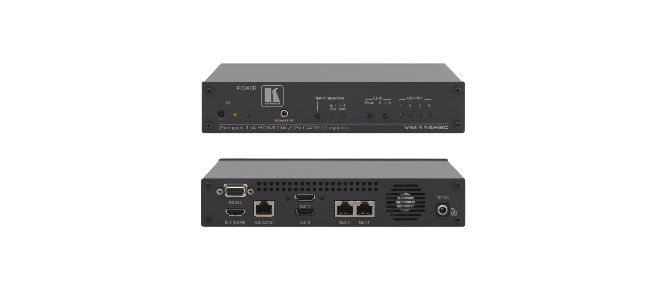 Répartiteur HDMI-CAT Kramer VM-114H2C 2x1:4 (1x HDMI, 1x CAT vers 2x HDMI, 2x CAT)