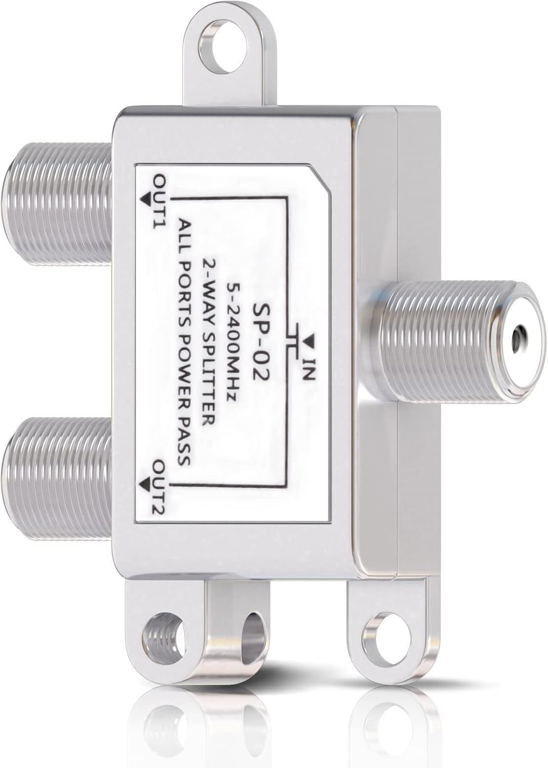 BESPORTBLE Répartiteur de Câble Coaxial 2 Voies 5-2400 MHz Compatible Rg6 Séparateur Numérique pour TV Satellite et Antenne Distribution Signal Haute Fréquence pour Systèmes Catv et