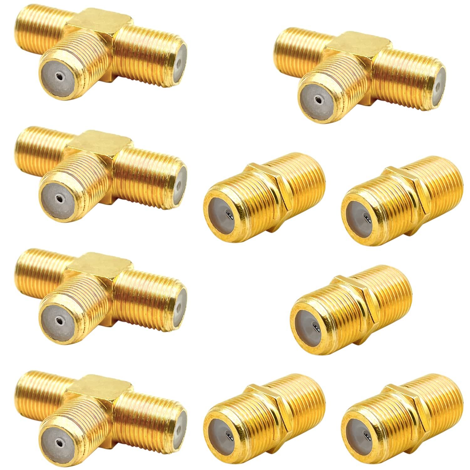 Alipis Lot de 10 Connecteurs Coaxiaux Femelles Type F en Alliage de Zinc Nickelé Répartiteur T 3 Voies Adaptateurs Câble Coaxial Argentés pour Antenne TV Vidéo et Surveillance Usage