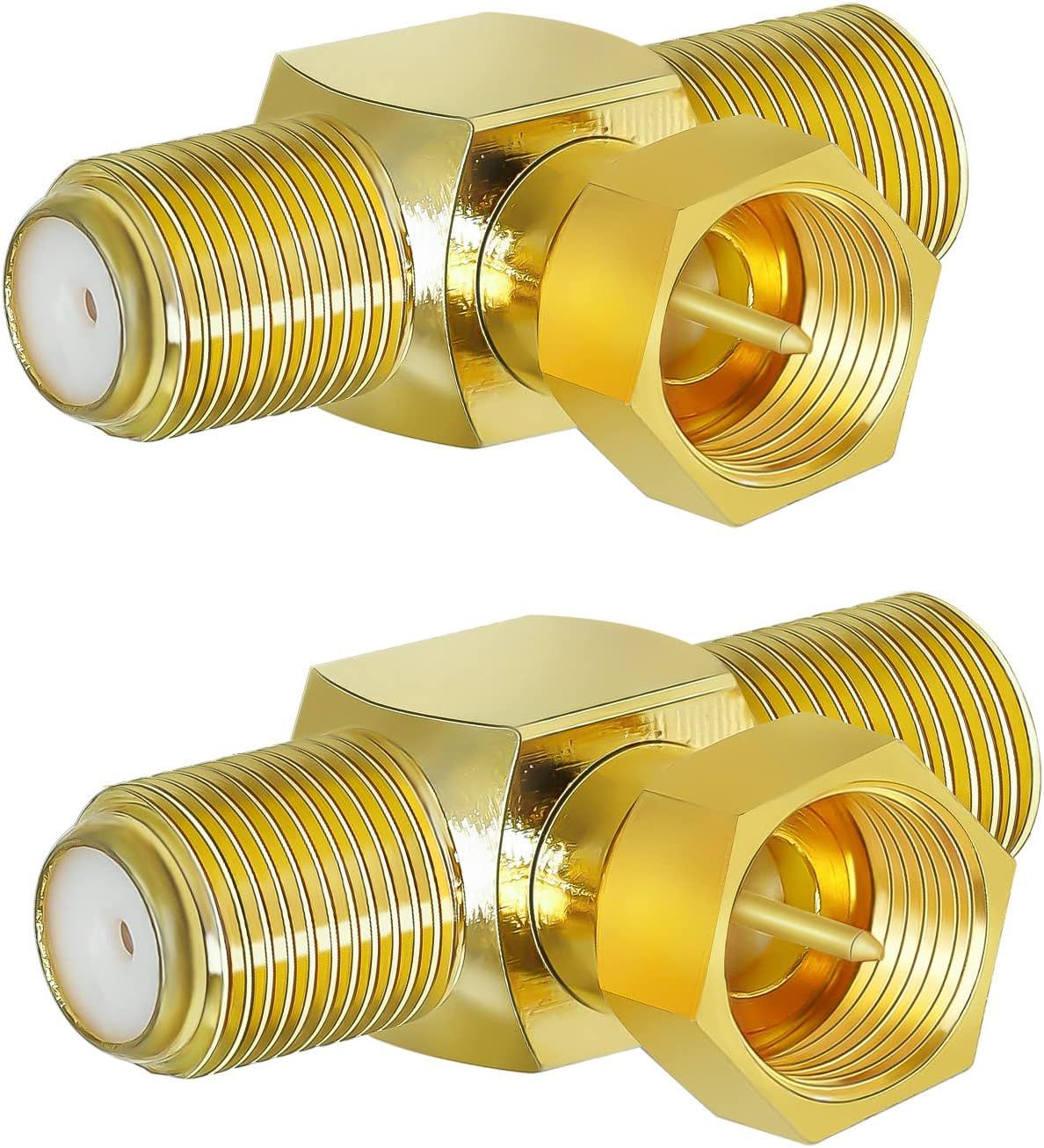 TUOLNK Connecteur répartiteur de Type F F mâle vers Double F Femelle Adaptateur Triple T connecteur coaxial 3 Voies en Forme de T pour TV vidéo magnétoscope antenne connecteur F combinateur 2 pièces